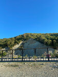 Хороший галечный пляж. Идёт ряд крытых деревянных шезлонгов, всегда есть тень. Парковка недалеко, за деревьями, то есть и ходить близко, и машины не мешают любоваться пейзажем. Есть нормальный туалет, открытый душ. Для детей детская площадка. Дальше зона палаток, можно с ночёвкой приехать. Есть столовая, но мы там не были, всё брали с собой. Есть мангалы, но они не рядом с шезлонгами, а на парковке. Стоимость комфортная. Тихо, спокойно, с детьми можно бюджетно отдохнуть.