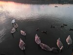 The embankment in the afternoon and evening..a beach with a family of swans ...