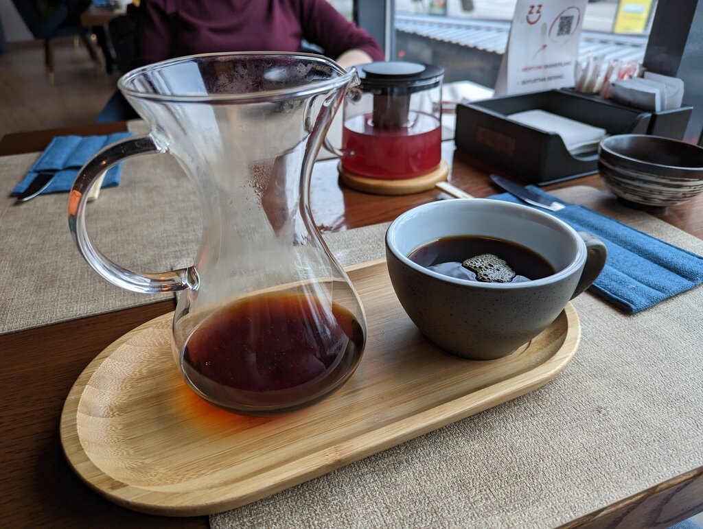 Pleasant atmosphere, music, lower lights, and coffee aroma... Good service. Sometimes, waiters make you wait, but overall, it's worth going to go and enjoy your coffee there.
