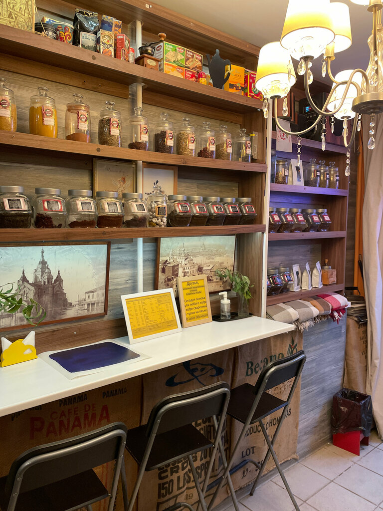 Кофейня находится в центре города, почти у Кремля. Хозяйка очень приветливая, кофе готовит быстро, сделала скидку на наш заказ) кокосовый сироп в кофе понравился, но малиновый сироп был кислым. Здесь можно купить не только кофе, но и чай и кофе для заварки дома.
