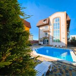 Отдыхали в начале июня этого года. Всё продумано и сделано для удобства. Номер- всё отлично: кровати, телевизор, холодильник, большой шкаф. По нашей просьбе поставили в номер детскую кровать( была застелена, даже с клееночкой). Номера всё с балконом. Столовая отдельно во дворе, что для меня было хорошо ( не люблю когда пахнет едой в спальне). Места в столовой много, есть мягкий диванчик, две плиты для приготовления, холодильники, телевизор. На террасе можно кушать. По желанию можно заказать завтраки, шашлык, плов, картофель фри и тд. Готовит сам хозяин Дима. На территории у дома большой бассейн с зоной для малышей. Детский городок ( новый установили при нас). Качели, батут. Целая площадка для волейбола, баскетбола, футбола. Всё очень здорово. До моря пешком минут 10. И от вокзала недалеко. Очень рада, что побывали у вас в гостях. Юлия, Дима и Владимир Петрович очень приятные и приветливые хозяева. Спасибо вам. Побольше вам благодарных постояльцев 😊