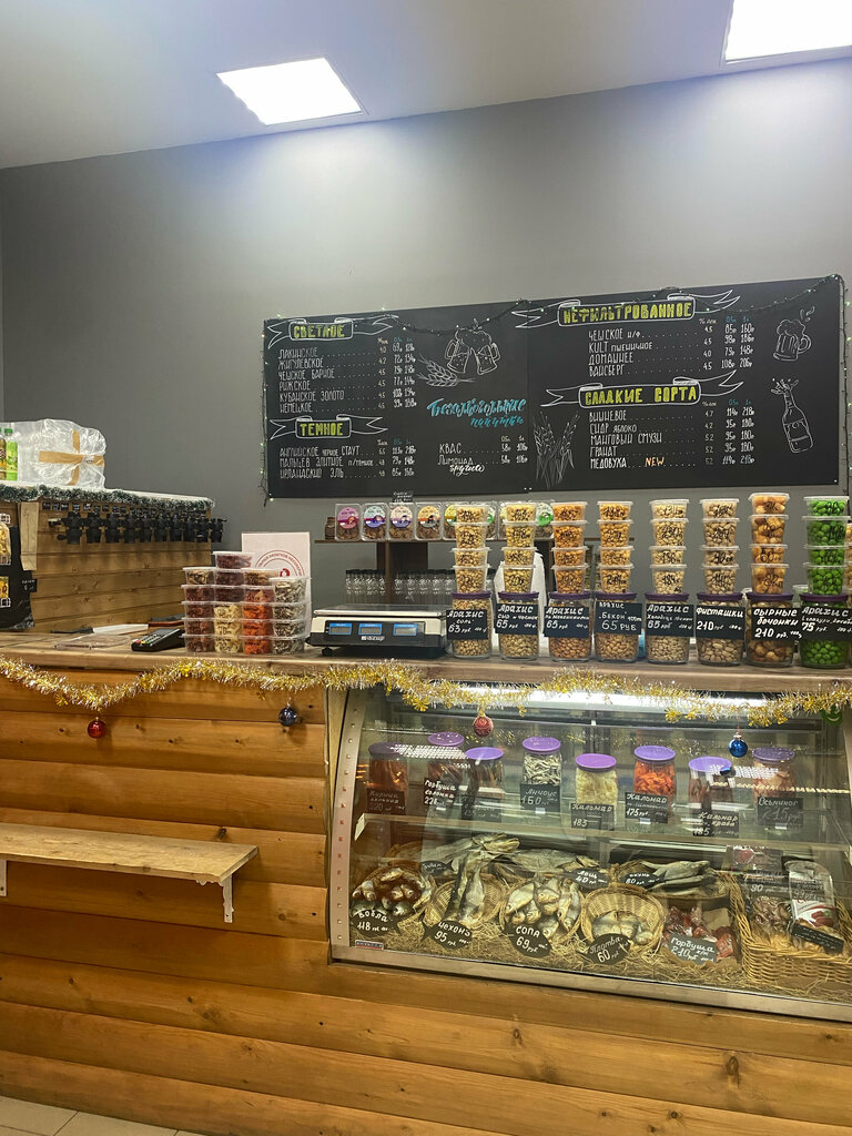 Хороший отдел по продаже пива из бочонка 🤩 Тёмное пиво 🔥 Снеки к пиву (уши свинные - мммм.... пальчики оближешь! Морские деликатесы и фисташки СУПЕР 💯 Всем любителям пенного и хмельного рекомендую 👍
