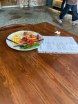 Оригинальная подача блюд. Интересный интерьер. Порции у блюд большие и вкусно. Время ожидания подачи 15 минут. Персонал приветлив.