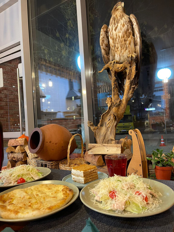 Брали несколько блюд на вынос, в целом остались довольны, но не без нареканий. Хинкали - очень вкусные. Аджапсандал тоже очень хорош. Хачапури по-аджарски неплох, но тесто недостаточно пышное, и сыра бы побольше. Про "шашлык" хочется сказать отдельно - это не шашлык, а просто запеченное в духовке мясо. Я понимаю, что мангал в этом здании не поставишь, но хотя бы электрошашлычницу можно использовать. Мясо в шашлыке из телятины было жилистое, а из свиной шейки - хорошее, только жаль, что не пожарено как шашлык. Внутри кафе как кафе - зайти поесть вполне можно, чисто и очень дружелюбная хозяйка. Цены такие же, как в остальных подобных грузинских кафе Реутова.