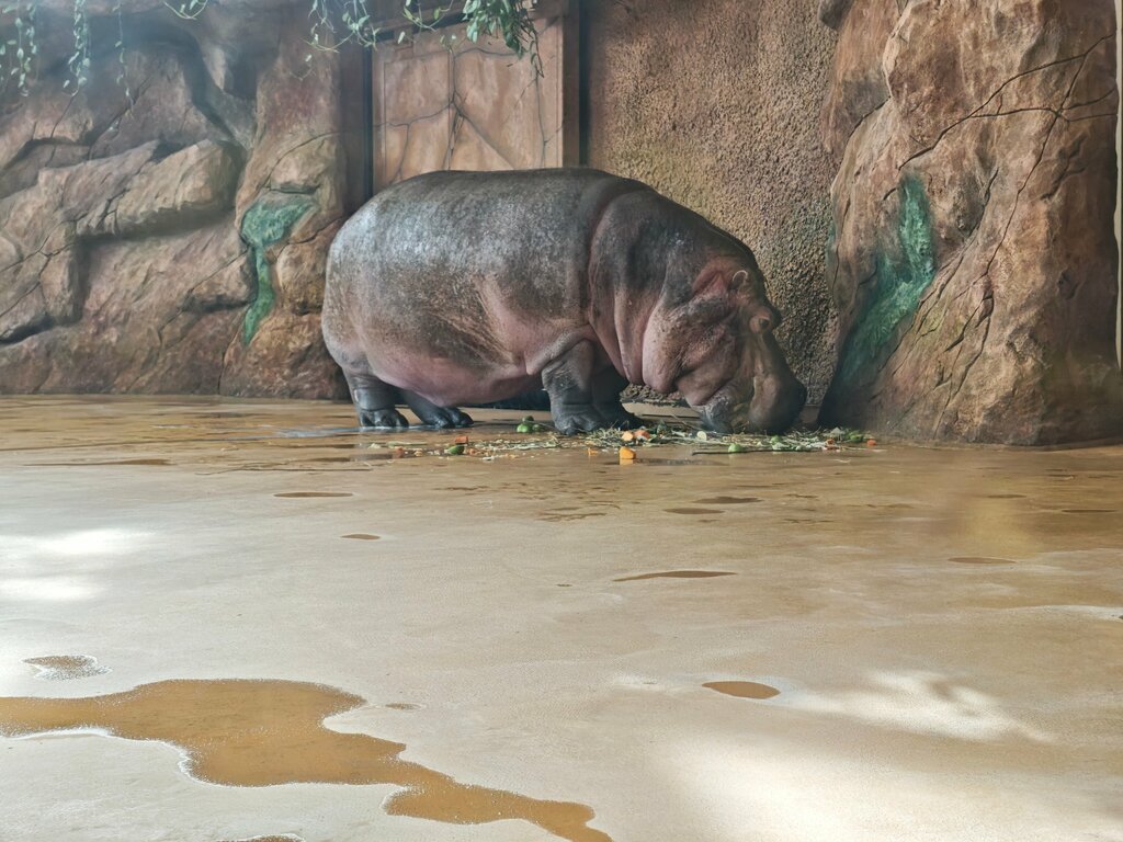 Всем доброго дня =) В сезон, конечно, будет тесновато в помещении для созерцания бегемота, потому что даже в апреле на кормлении комната была полна. Но это единственный минус. Покормили по часам, дети довольны, взрослые тоже. Приятным дополнением были египетские цапли, которые забавляли "битвой" за палочки в ожидании кормления.
