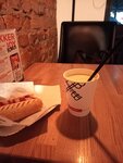 Место нелохое.Большой выбор и часто всё в наличии.Большая проходимость в обеды,доступность в центре. Но попросишь напиток сделать здесь,а нальют с собой.Причем вроде все вокруг сидят с чашечками,а тебе в бумажный стаканчик налили.И дело здесь не в стаканчике.Одна сотрудница не очень приветливая и показывает своё недовольство.