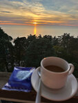 Отдыхали в конце октября, очень повезло с погодой. Отличный санаторий, шведский стол на твёрдую четвёрку. Лечение прошли прошли по путевке и докупили несколько процедур. Эскалатор работает с 7 утра до 22 постоянно, перерывов нет. Кафе у моря понравилось, приятно сидеть с чашечкой кофе и любоваться восходом или закатом. Дополню отзыв. В это м году 2024 отдыхали в ноябре большой компанией. Номера дали на разных этажах. Теперь знаю, чем отличаются номера. Самый лучший вид на море на 8 этаже! Это сказка! Рассвет и закат наблюдать на море - это дорогого стоит. Номер джуниор с большим балконом, столик и стулья есть.