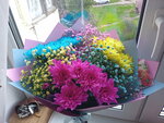 Добрый вечер. Сегодня маме на День Рождения сделали очень весёлый букет. Ну, выбор цветочков был мой. А соединили и собрали красиво флорист в магазине. Спасибо большое!) По цене приемлемо. ps: ещё преимущество данного магазина, что он работает с 7:30. Большой выбор разных цветов, целый холодильник. И комнатных растений много, кашпо и т.п.