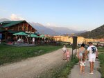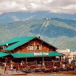 Отличный ресторан с неповторимой атмосферой шале. В центре зала на первом этаже разжигают огонь. Очень разнообразное меню на любой вкус. Любим их наливочки, особенно щавель это что-то. Вкус лета посреди зимы. Шикарный вид на поляну 960 с террасы. Чтобы войти в ресторан необходимо подняться на лифте на второй этаж. Могут усадить и быстро обслужить большую компанию. Зимой в сезон музыканты исполняют песни на заказ. Есть хороший фотограф, много классных фото привезли именно с этого ресторана. Для нашей семьи этот ресторан вне конкуренции в этой локации.