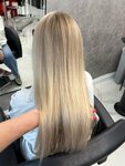 Хожу к колористу Юле уже давно и каждый раз выхожу счастливой. Она потрясающе чувствует блонд и всегда подбирает оттенок так, что он идеально мне подходит. Если показываю фото — результат получается именно такой, как хочу. И главное — волосы остаются здоровыми и живыми. Цвет выглядит дорого и играет при разном освещении. После Юлиного окрашивания мне постоянно делают комплименты. Это мой секрет красивого блонда ❤️ (Нижние волосы не крашу по своему желанию — нравится сочетание блонда и моего родного цвета)