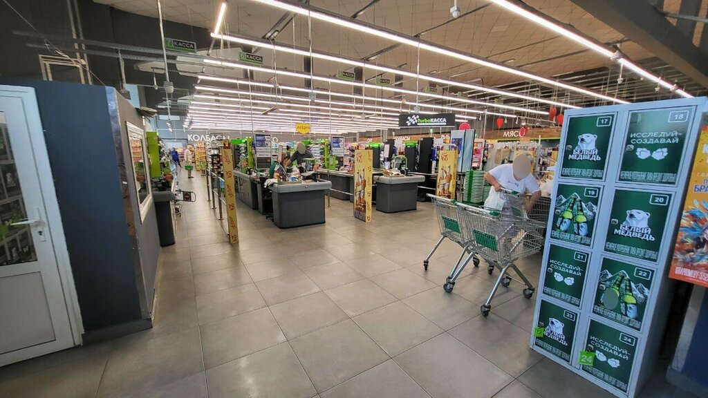 The average store by area (but not small) has everything you need. We were pleased with the prices of some goods, especially sausages and vegetables. One minus, the scales at the checkout showed about 40-50 grams more than the control scales on the hall