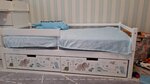 Отличная кровать. Изготовлена из безопасных материалов. Ребенку очень удобно спать. Места много, можно смело спать с ребенком. Очень вместительные ящики. Подойдет для детей от 1.5 лет. Бортики очень удобные и закругленные Ребенок сразу же полюбил находиться на кроватке. Матрас желательно не менее 15 см.  Очень удобно, что можно снимать бортики и убирать ящики. Кровать легко передвигать