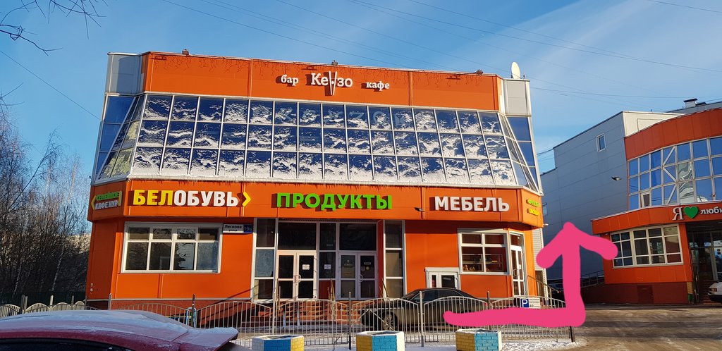 Рядом с автобусной остановкой, с продуктовым магазином и другими делами. Хороший ассортимент обуви, в меру обширный. Персонал терпеливый. Вполне уютное небольшое местечко для выбора на прогулке.