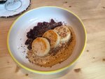 Еда и напитки вкусные. Но несли все очень долго, пришлось напомнить о себе. В итоге муж не мог нормально поесть, потому что ему принесли английский завтрак, а мне почти час несли сырники. При этом заполненность была небольшая