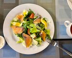 A wonderful restaurant. One of the few favorite places. Each dish is prepared with trepidation and very tasty, there is a room for children with observers, the staff is responsive, polite, attentive, if you do not know what to order, they will tell you with an orientation to your taste, by the way, they never missed, the atmosphere is quiet, calm, cozy, unobtrusive music for the background, the waiting time for selected dishes is no more than 15-20 minutes. The prices are reasonable, you can pay with a card. In the photo below, I managed to film a salad with salmon and greens, while waiting for the order, we had a snack with them, but the main dish looked so delicious that it was not possible to film (