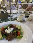 Вкусные салаты и хачапури. Чай травяной бесподобен. Уютный интерьер, все чистое, белое, красивое. Персонал отзывчивый - музыку убавили, кондиционер добавили 👍