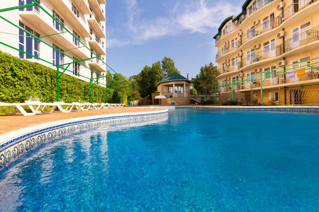 Подогреваемый до 29 градусов в сентябре бассейн с гидромассажем - это сказка! Обслуживание- всё чисто, вежливо, ненавязчиво. Бассейн просто спас отпуск! Своя парковка, рядом курортный рынок и 2 столовые - в соседнем отеле и на перекрёстке с проспектом. К сожалению, бар и кафе в этом году не работали, как и во многих отелях Анапы