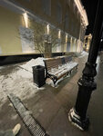 Ряд скамеек , такие крепкие , металл и дерево . Плюс ковка