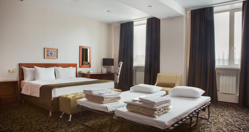 Бронируйте выгодно на benefitplaza.ru В номере: Две отдельные кровати Кресло-кровать или диван Письменный стол Система кондиционирования Телевизор LED ТV 42’ Спутниковое телевидение Телефон Мини-холодильник