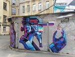Система дворов в этом доме одна из самых длинных в Питере. Поэтому ленфильмовцы любили там сцены городских погонь снимать. В одном закутке, там где гаражи, настоящий заповедник граффити. Рисунки всё время обновляются. Некоторые из них высокого художественного уровня.