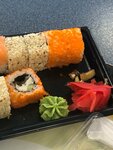 Роллы ужасны. Маленькие, невкусные. В калифорнии вместо икры тобико имитация в виде каких-то сухарей. Рис переваренный, но сухой. Ингредиенты вроде не испорченые, но и не свежие и безвкусные.