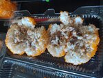 В меню из димсамов практически ничего нет в наличии. Гедзе подаются залитые соевым соусов. Неприветливый кассир, который только со второго раза озвучивает верную сумму покупки. В меню указана позиция: онигири с крабом, 80 рублей. Заказываю, кассир уточняет, сколько я буду. Получив мой ответ - 1 штуку - говорит: "Они у нас по две штуки продаются". Настояла, что мне нужна все-таки 1 штука и не пожалела об этом. Начинка из майонеза и краба даже не перемешана, рис пахнет моющим средством. Лист нори бледно-зеленого цвета вызывает не аппетит, а сомнения.