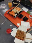 Суши как суши, риса много рыбы мало! Брали там пару наборов. жадничают на имбирь и вассаби, так же мало кладут салфеток!