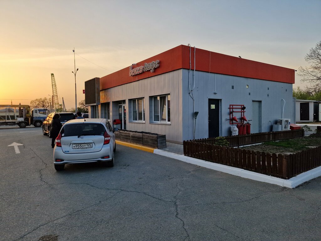 Посетила в мае 2023. Интересный сервис - заказываешь еду через приложение, приезжаешь к окошку на заправке, заказ уже собран. Уютная беседка на улице. Еда достаточно вкусная. Обслуживание хорошее. В целом - рекомендую.