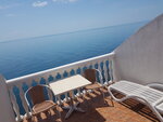 Просторный двухкомнатный номер (более 42 м2) на 5м этаже. Если личная кухня с полным набором посуды и оборудования и спальня. На персональной лоджии есть шезлонг, стол и 2 стула. В номере двуспальная кровать и раскладной диван. Панорамный вид на море