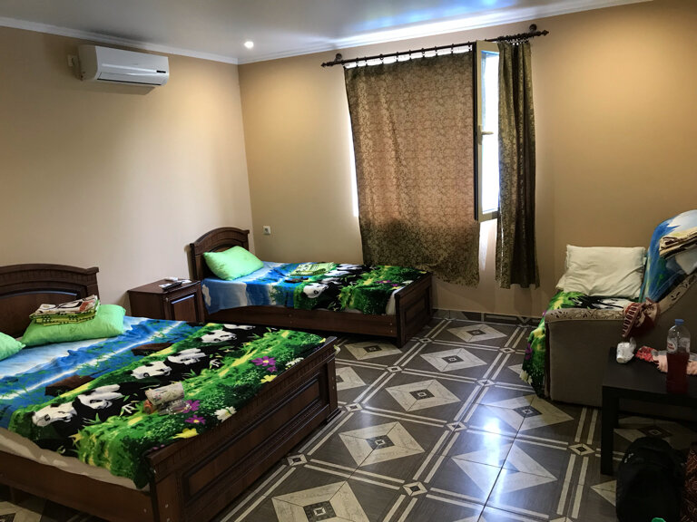 Очень приветливые хозяева.Есть парковка для авто. Ночевали одну ночь.Номер на 4 человека.шли транзитом на Абхазию.Кровати, бельё,сан узел все супер.