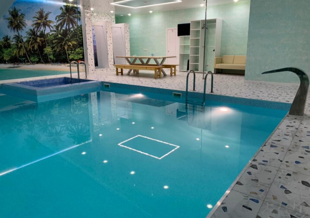 Парилка жарит, бассейн хороший. Обстановка конечно совсем не очень музыка только через свой телефон а если музыки нет то через интернет не реально слушать. Комнаты отдыха это вообще. Если лесть туда выпившему то думаю это целый квест особенно в ту что с лева. Для данного номера считаю что цена очень завышена