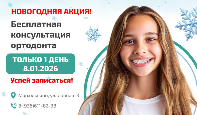 ❄️ Новогодняя акция: успейте записаться! ❄️ Бесплатная консультация ортодонта — только 8 января 2026 г.! Дата: 8.01.2026 (только 1 день!). ...