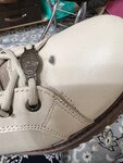 Купили зимние ботинки за 9000руб. Одевалась обувь 4 раза, вся краска потрескалась, от металлической бляшки остаются пятна, которые нельзя отмыть, так как стирается краска. Место шва промокает. Уже выглядят затасканными… полнейшее разочарование. Г собачье