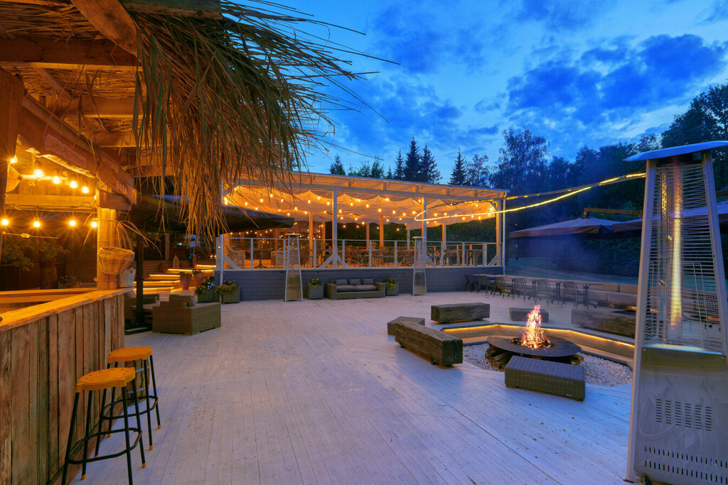 Очень красивое, комфортабельное место для отдыха. Великолепная баня и пар-мастеры. Красивая природа. Стильные домики. Приветливый персонал. Были на свадьбе друзей, шикарно отдохнули. Проживали в отдельном домике, где было панорамное остекление во всех помещениях и джакузи на террасе. Порадовало обслуживание на банкете, природа. Из минусов достаточно высокая цена и грибник, который ходил по территории вокруг домиков, и наверняка разглядывал не только грибы... В общем, пришлось от него закрывать жалюзи, т.к. ощущение приватности (и особенно в санузле) было нарушено.