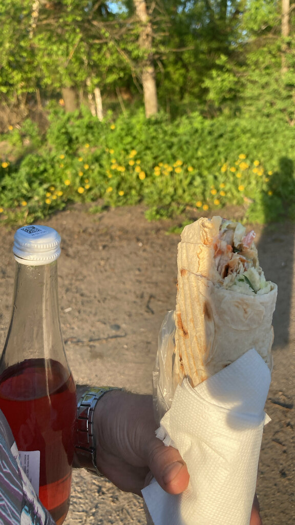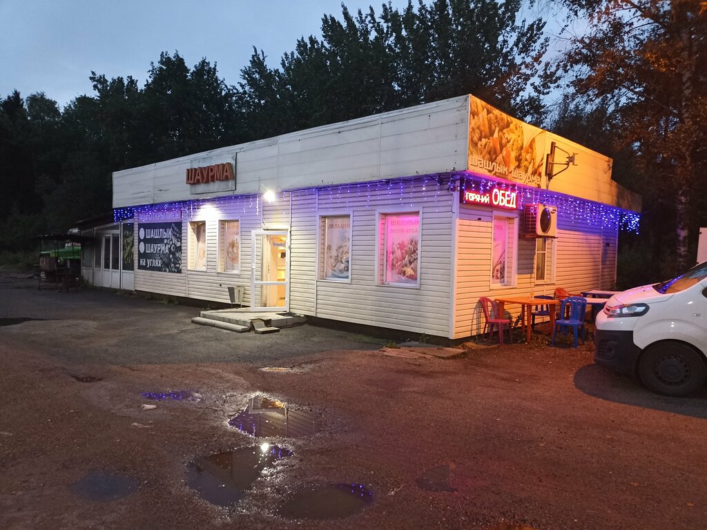 Шаурма, великолепная, большая, вкусная и недорого. Заезжайте, попробуйте сами. Регулярно посещаем данное заведение, когда оно попадается по пути следования.