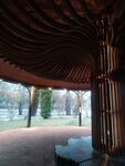 Замечательная беседка, просто огромная, изнутри напоминает гриб.