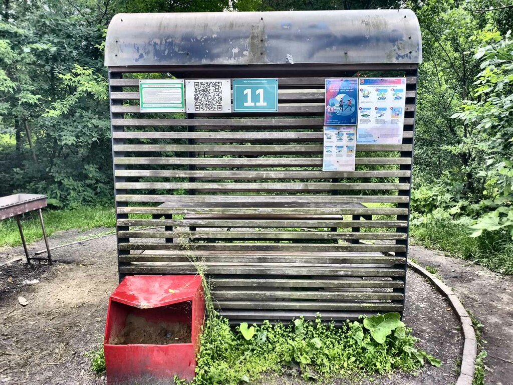 Беседка №11. Мангал есть встроенный. 500 руб за 4 часа аренды, в Москве, у воды, у пляжа - это божеская цена. За неделю «до» бронировали нашей компанией из 10 человек на воскресенье, вторая половина дня на mos ru. С 14:00 до 18:00 и с 18:00 до 22:00. Первый раз без вещей пришли мы к 14:05, беседка была занята, люди при нас на мангал ставили решётку, но сказали, что это последняя партия и они уже собираются. Второй раз, уже с вещами, мы пришли к 14:20. Предыдущая компания уже собралась и ушла, но тут появились трое лиц другой национальности и раскладывали всё своё. Мы у них спросили: бронировали ли они? Они сказали - нет. Мы им объяснили, что тут надо бронировать беседки через сайт и они благополучно ушли к другой беседке. Где-то спустя полчаса нашего нахождения у нас проверили билет. Охрана ходит в составе четырёх человек и проверяет. Бывает, что периодически подходят другие люди и просят воспользоваться мангалом (говорят, что их со своим мангалом гоняют и они место найти не могут). Это немного напрягает. Было раза три, что другие группы отдыхающих к нам присоединялись таким образом на полчаса-час. Карту всех беседок и туалетов смотрите на второй фотке.