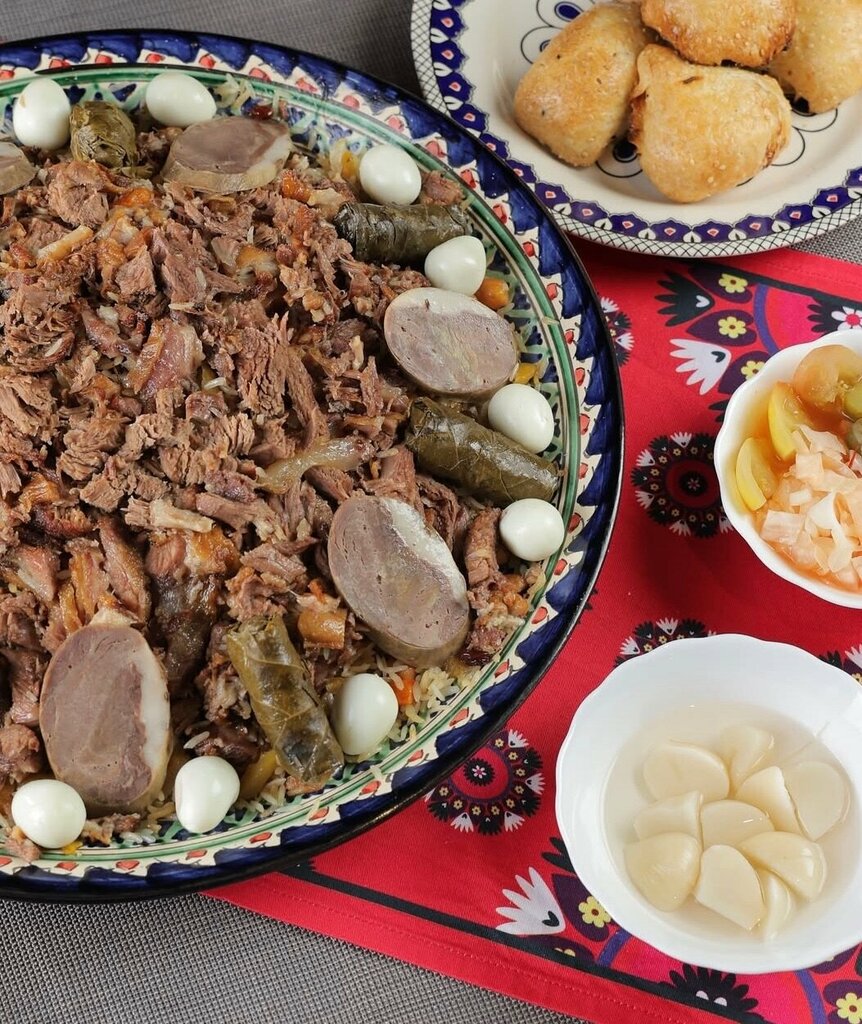 Традиционный узбекский плов, приготовленный из сочной говядины, ароматного риса девзира, моркови и специй. Отличается насыщенным вкусом и аппетитным ароматом
