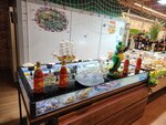Просторно, уютно, свежие продукты. Большой выбор разных направлений, много редкого товара. Например живого огромного краба я не помню чтоб встречал.
