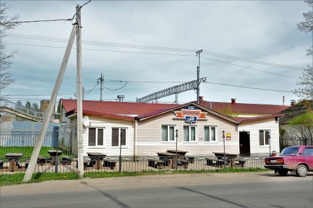 С виду, просто никак: одноэтажный барак, между дорогой с интенсивным движением и забором, закрывающим ж.д. Внутри всё потрёпано временем, но для Малой Вишеры весьма неплохо. Вероятно, это единственное место в посёлке, где можно выпить, закусить и потанцевать в приличной обстановке. Так как здесь встречают по одёжке, то не приходите, пусть и в дорогой одежде casual или в уличном стиле, по ходу, здесь еще котируются малиновые пиджаки и золотые цепи. На заварной кофе тоже не надейтесь. Здесь Вам принесут дешевый и не вкусный растворимый, по цене заварного. Тем не менее, другого обшепита рядом с вокзалом нет