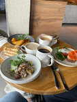 Мне с завтраком не повезло. Заказала зерновой тост с гуакамоле и яйцом пашот. Почему-то в меню не указано, что там ещё и рыба. Я её не ем совсем, бывает, у людей аллергия, почему бы не указать в меню или на словах не предупредить, если в меню забыли напечатать, что в этом завтраке рыба. На мой взгляд странно. Потом 15 мин. ждала пока рыбу уберут. Яйцо пашот в этом завтраке подаётся в ледяном виде,его, судя по всему, готовят заранее и хранят в холодильнике, даже не тёплое. Если вы привыкли есть яйца в горячем виде об этом тоже надо предупреждать, судя по всему. Соли, чтобы посолить холодное яйцо нет ни на столе, ни в зале. Попросила соль, получила через 10 мин. с закатыванием глаз. Кофе вкусный. Завтрак не удачный, если не обговорите ваши ожидания.