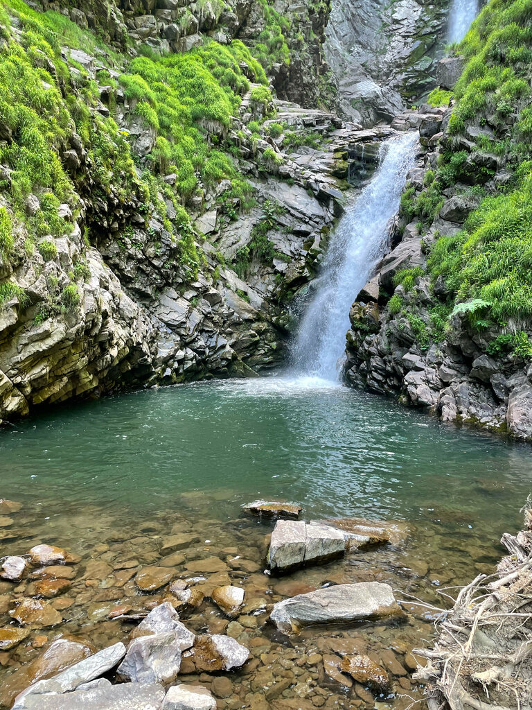 Это место реально стоит посетить, безумно красивый водопад! Это самый большой водопад который есть в горах высотой 75м состоящий из 3х каскадов. Для поездки нужен пропуск на приграничную зону, но он оформляется без проблем на госуслугах. Дорога - это отдельная песня, более красивых видов вы врятли где сможете найти. Но дорога очень опасная и нужно ехать очень аккуратно и только на внедорожнике.