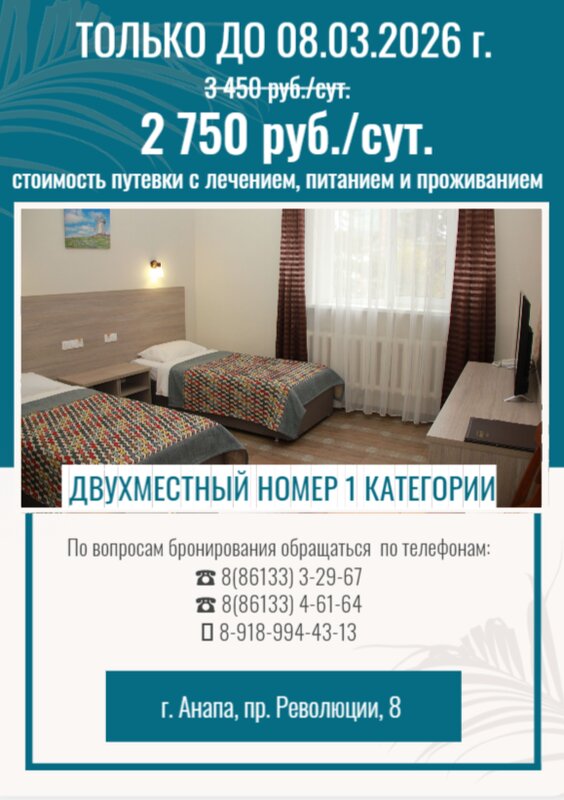 ПРОДЛЕНИЕ АКЦИИ! Только до 08.03.2026 г. стоимость путевки с лечением, питанием и проживанием в двухместном номере - 2750 руб./сут. с челове...