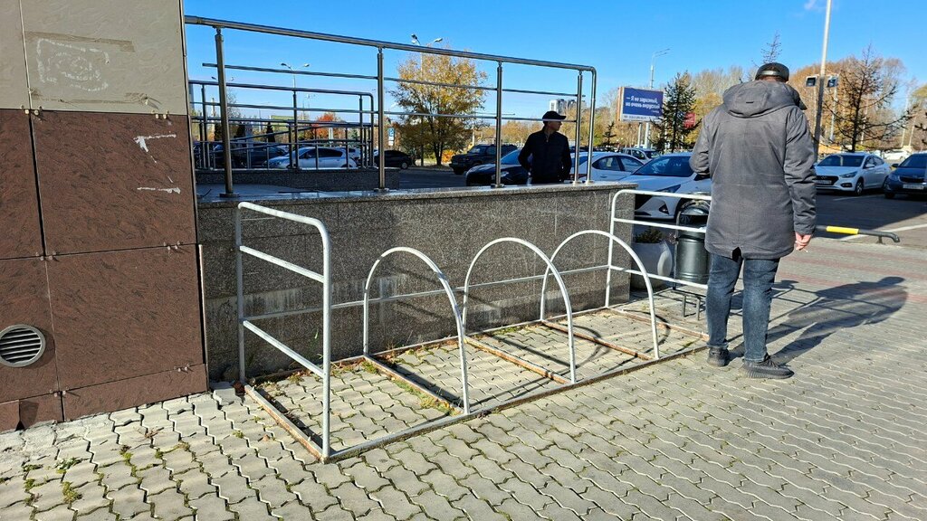 Не удобная велопарковка и не красивая. Совсем не вписывается в атмосферу Доброй Столовой по соседству. Смотря на неё хочется плакать.