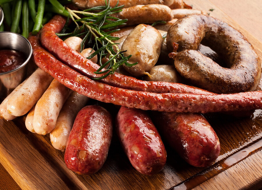В сет входит 7 видов колбасок, изготовленных по оригинальным немецким рецептам. Подается с капустным салатом, маринованными огурцами и соусом