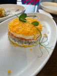 Пивной рыбный сет из мойвы-фри, рыбных наггетсов, филе кальмара в кляре, тигровых креветок темпура и порции северных отварных креветок. Подается с чесночными ржаными гренками, картофелем «Айдахо» и тремя фирменными соусами: Тартар, белый и аджика.