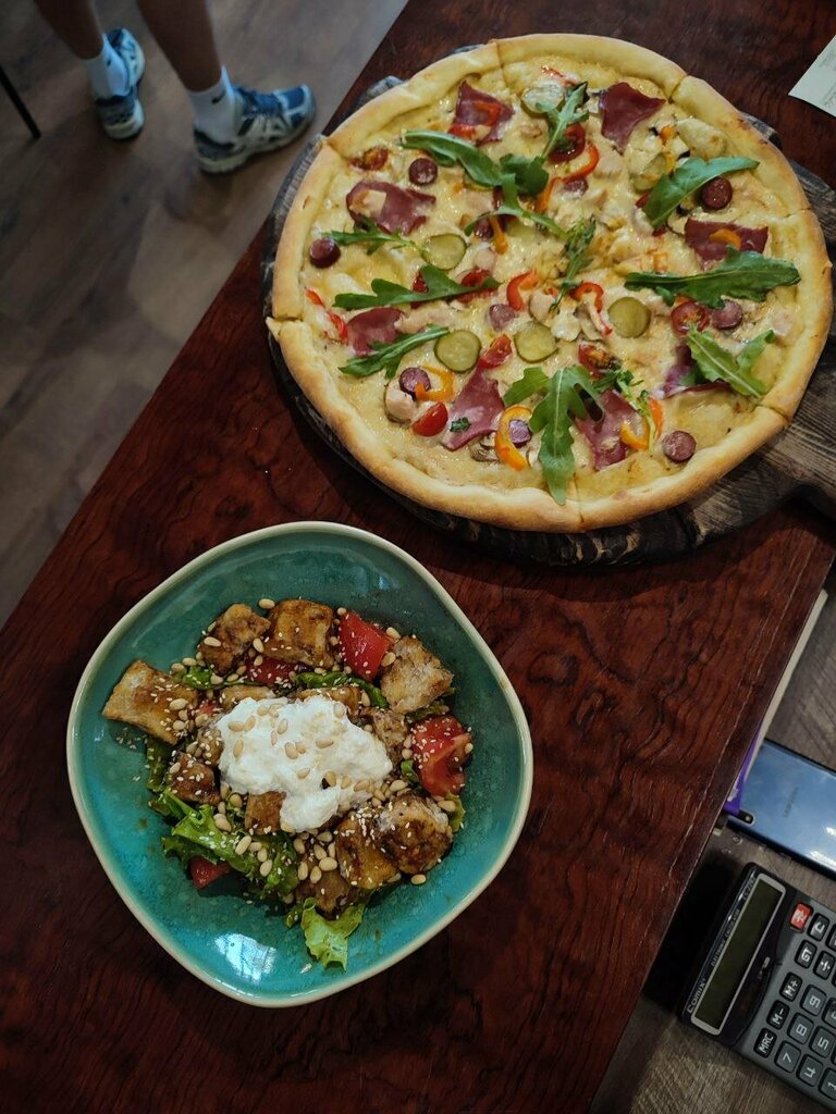 Прекрасное место чтобы провести время, в зале очень комфортная атмосфера и музыка, а также вкусная еда (самый вкусный том ям который я пробовала в нашем городе, а еще обязательно возьмите куриную сковородку с овощами, это просто объедение!!). А также хочется отметить качество пицц, очень вкусные цезарь и 4 сезона, нравятся как взрослым, так и детям, смело ставлю 10/10 💚