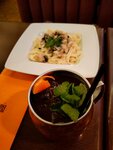 Бар великолепен, один из самых старых и достойных заведений в Питере! Здесь всегда очень толковые ребята-бармены. И только здесь можно испробовать наивкуснейший не банальный коктейль, который не заявлен в прейскуранте, а составлен по вкусу гостя. Хотя ассортимент просто лопается по швам из-за изобилия названий и возможностей бара)) Только вот с меню всё обстоит гораздо скучнее. Но на то и бар и акцент на коктейли. Рекомендую тем, для кого важно не напиться и нажраться, а покайфоватьв приятном месте! Незабываемо!
