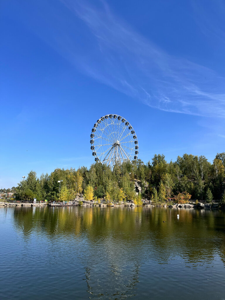 Эта высоченный аттракцион 🎡 расположен в самом крутом 🔥💯💥городском природном 🌲🌳🌲 и развлекательном 🎪🎡🎠🚁🏎️ парке Урала! Здесь есть куча активностей для детей 🎠 🥁🎂🤸🎁🎀🎂, зимой заливается каток ⛸️🥃🚑, скоростной ледяной спуск 🏂🧚🎿, есть водопад и маугли-парк 🙊🙉🙈, а ещё торгово-развлекательный центр с основными мировыми🗿🗼🗽 брендами 🧢🎩👟👞👠👡🕶️👢🧥. В целом - здесь незабываемые 💋 💞 💋 виды, умиротворенные, а иногда шальные 💥💯🔥, утки🦆🦆🦆 и ещё много, много интересного!!! Обязательно посетите парк 🌹💖💐 и это оригинальное место - они вас точно не разочаруют, берите детей! Положительные💃🕺💋👄 эмоции и уникальные фотографии📸🎞️📷 гарантируются💓💗💖!!!