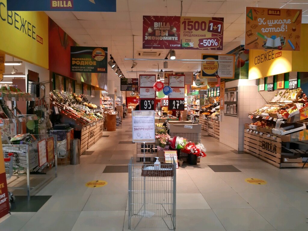 Раньше магазин был сверкающим, "праздничным". Отличался высоким качеством овощей и фруктов по низким ценам. При входе в торговый центр перед ним был большой холл. "billa" была видна прямо от входных дверей. Сейчас холл заполнили киосками, пробираться приходится узкими партизанскими тропами. В зимнее время входные двери в торговый центр открывают так, что приходится пробираться по узкому коридорчику между ними. Сама "BILLA" стала какая то потухшая, пыльная, захламленная. Овощи и фрукты по качеству и ценам почти не отличаются от соседних магазинов. Как то утром зашёл за стиральным порошком, но нужного не оказалось на прилавке. Нашёл женщину в форме, чтобы узнать когда его вывезут. Она объяснила, что на весь магазин всего три человека. Она - уборщица и к товару не может прикасаться и два продавца. Один на кассе и второй в отделе кулинарии. Никто из них свое место оставить не может. Порошок ждать не стоит. Видимо, дела идут не очень. Может быть скоро закроется. Жаль. Хочется, чтобы стал прежней "BILLA", сверкающей и праздничной, в которую приятно зайти.